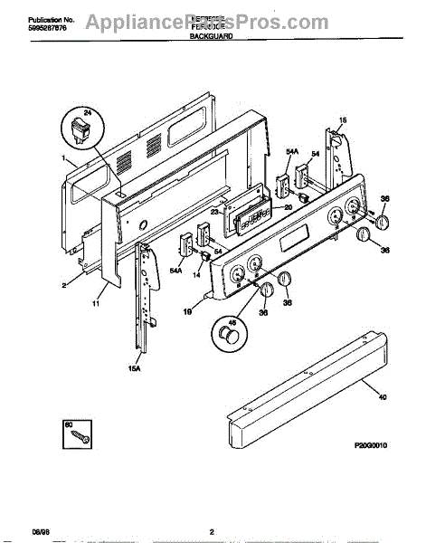 Parts for Frigidaire FEF350BEWA: 02 - Backguard Parts