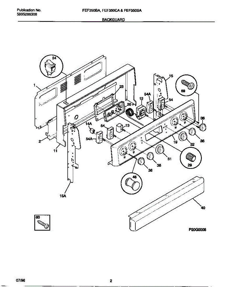 Parts for Frigidaire FEF350CASG: 02 - Backguard Parts