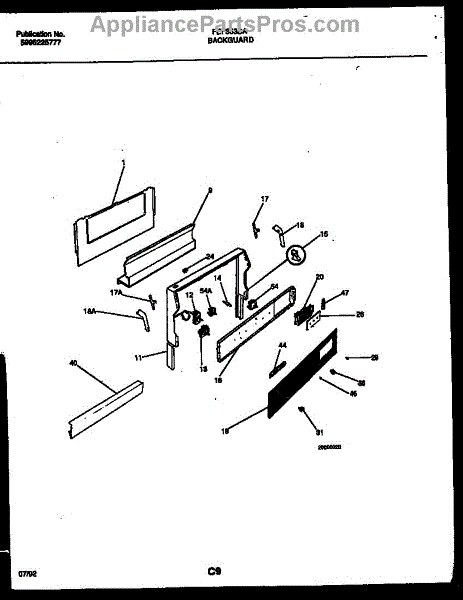Parts for Frigidaire FEF353BAWA: 02 - Backguard Parts