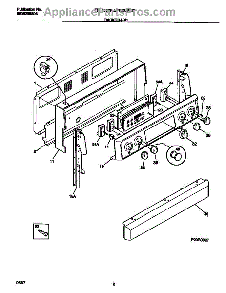 Parts for Frigidaire FEF353BFWA: 02 - Backguard Parts