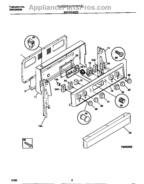 Parts for Frigidaire FEF357BEWB: 02 - Backguard Parts