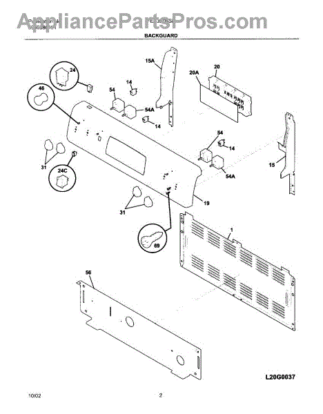 Parts for Frigidaire FEF357BSB: 03 - Backguard Parts