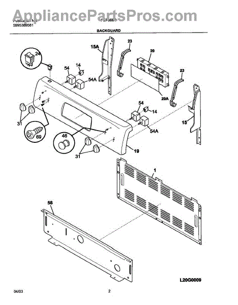 Parts for Frigidaire FEF366CSA: 03 - Backguard Parts