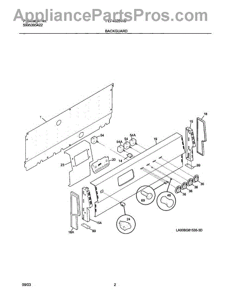 Parts for Frigidaire FEF402BWB: 03 - Backguard Parts