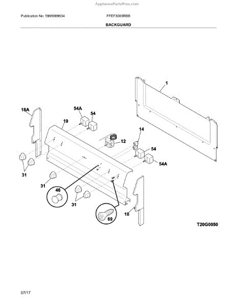 Parts for Frigidaire FFEF3003RBB: Backguard Parts