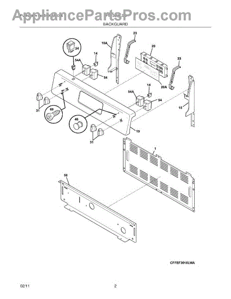 Parts for Frigidaire FFEF3015LSG: 03 - Backguard Parts