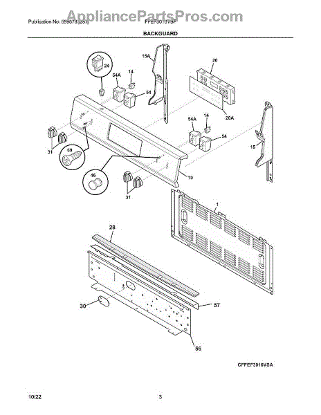 Parts for Frigidaire FFEF3016VBF: Backguard Parts