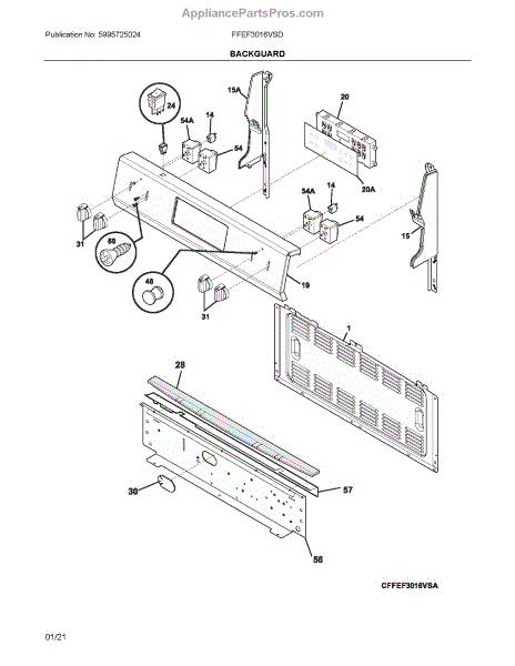 Parts for Frigidaire FFEF3016VSD: Backguard Parts