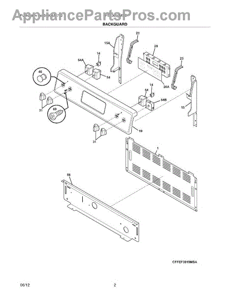 Parts for Frigidaire FFEF3019MSE: 03 - Backguard Parts