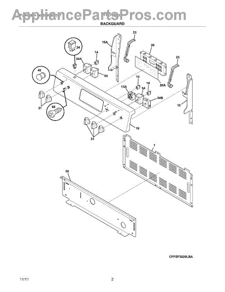 Parts for Frigidaire FFEF3020LBF: 03 - Backguard Parts