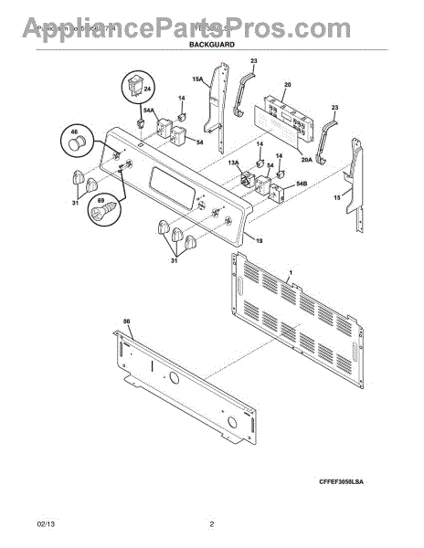 Parts for Frigidaire FFEF3050LSN: 03 - Backguard Parts