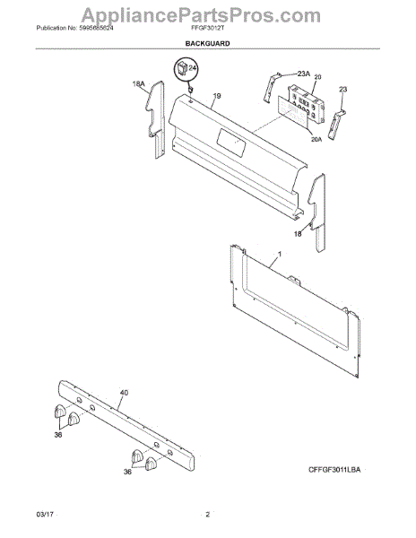 Parts for Frigidaire FFGF3012TBA: 02 - Backguard Parts