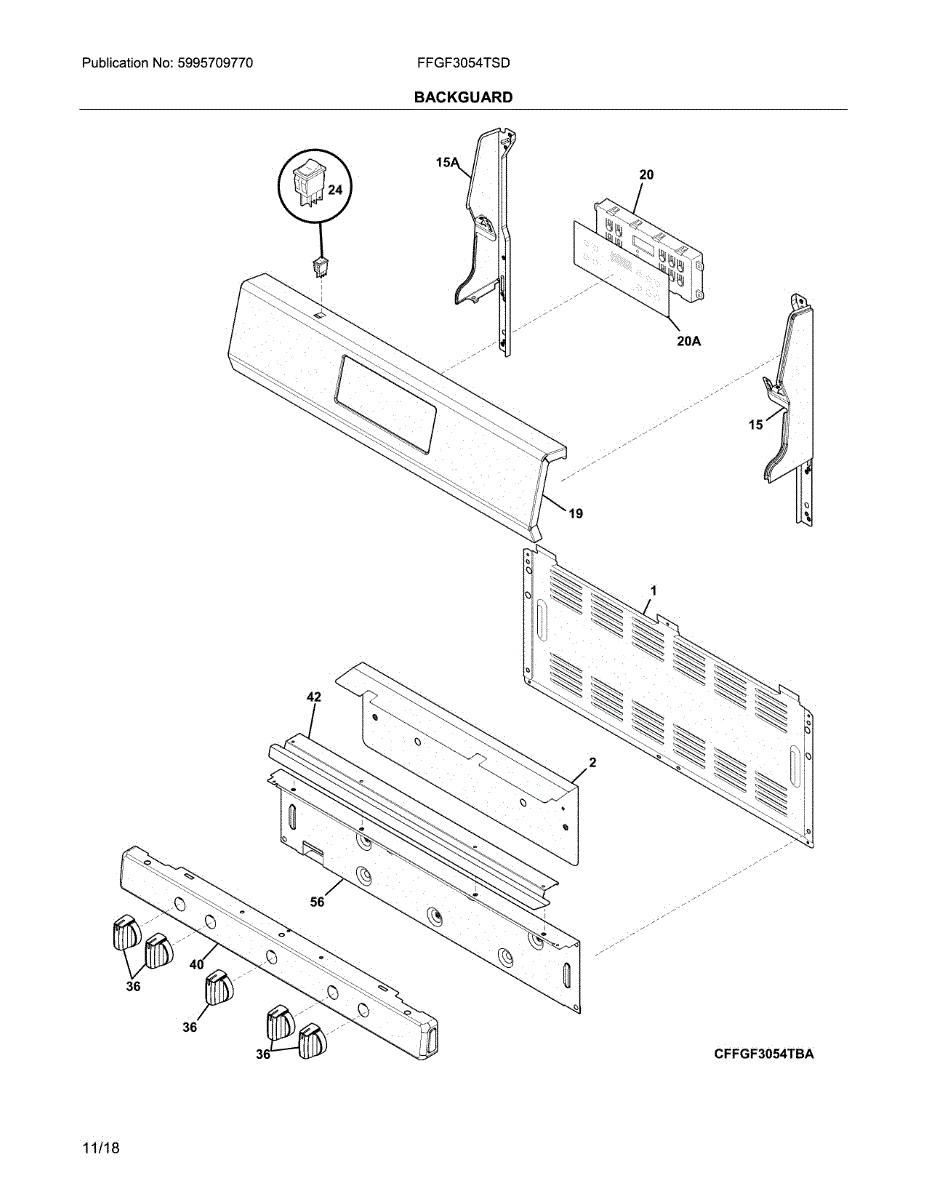 The Control Panel Assembly is an OEM interface component for Frigidaire gas ranges. It houses the electronic display, knobs, and circuits to program cooking functions and monitor burner performance.