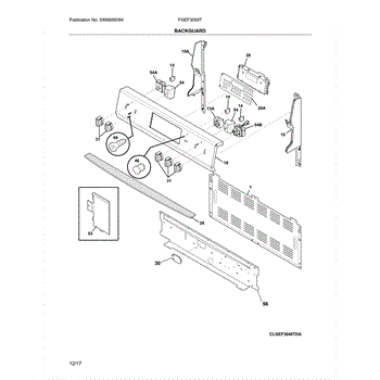 The Overlay is an OEM part for Frigidaire ranges and ovens. This part serves as the protective and decorative cover for the control panel. It features the control labels and markings that guide users in operating the appliance, making it an essential element for both functionality and aesthetics.