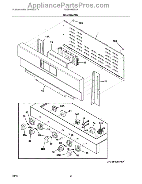 Parts for Frigidaire FGEF4085TSA: 02 - Backguard Parts