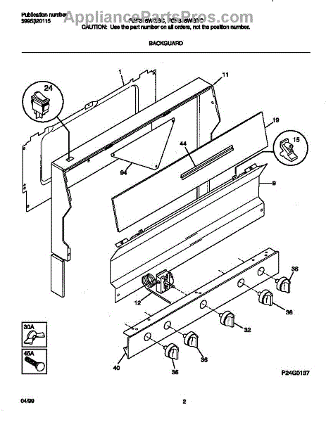 Parts for Frigidaire FGF316WGTC: 02 - Backguard Parts