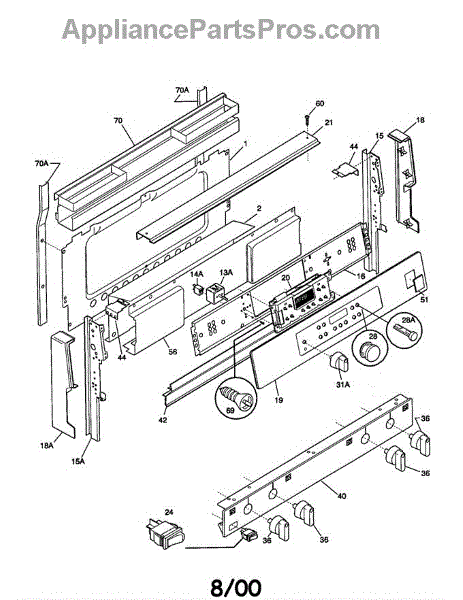 Black right-side end cap for range control panels. Replaces cracked, broken, or missing endcaps that leave control panel edges exposed or unfinished.