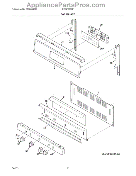 Parts for Frigidaire FGGF3030PBE: 02 - Backguard Parts