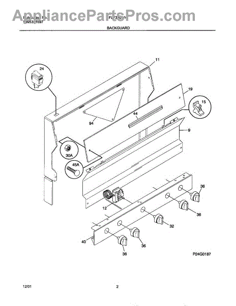 Parts for Frigidaire FLF316WHSC: 03 - Backguard Parts