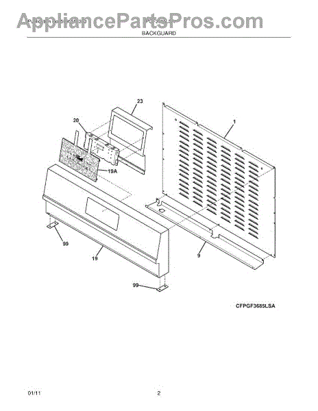 Parts for Frigidaire FPGF3685LSA: 03 - Backguard Parts