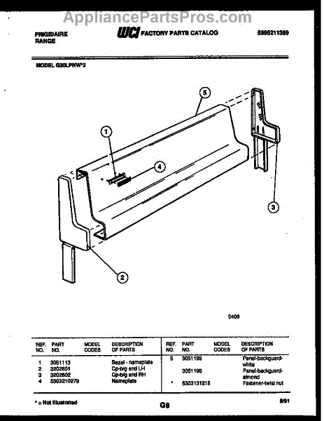 Parts for Frigidaire G30LPNW2: 02 - Backguard Parts