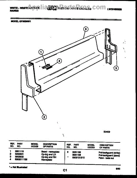 Parts for Frigidaire GF300ND1: 02 - Backguard Parts