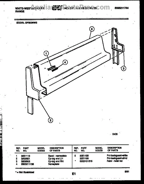 Parts for Frigidaire GF300ND2: 02 - Backguard Parts
