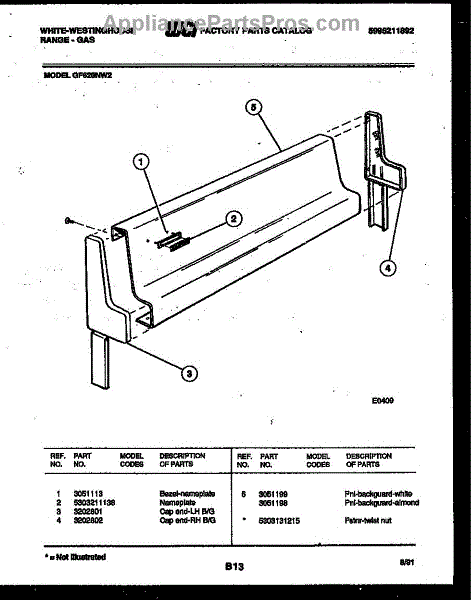 Parts for Frigidaire GF620NW2: 02 - Backguard Parts