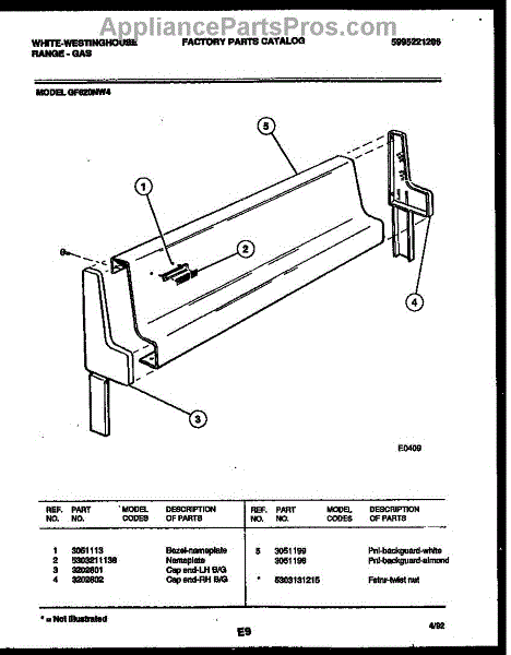 Parts for Frigidaire GF620NW4: 02 - Backguard Parts
