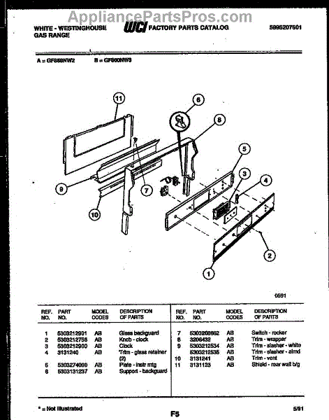 Parts for Frigidaire GF860ND2: 02 - Backguard Parts