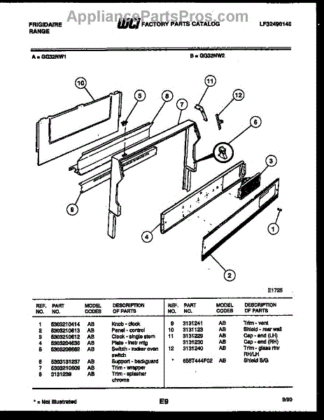 Parts for Frigidaire GG32NL1: 02 - Backguard Parts