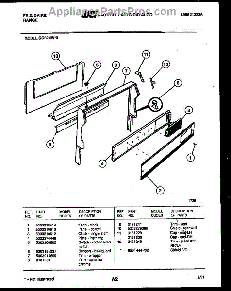 Parts for Frigidaire GG32NL3: 02 - Backguard Parts