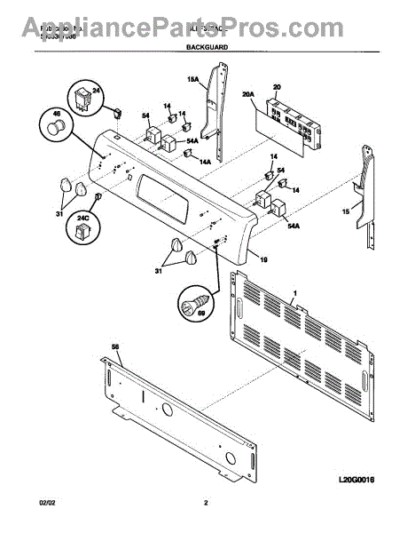 Parts for Frigidaire GLEF376AQE: 03 - Backguard Parts