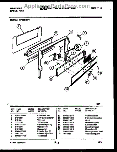 Parts for Frigidaire GP32BNW4: 02 - Backguard Parts