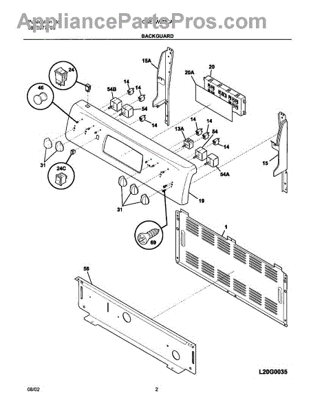 Parts for Frigidaire GSE3WZBCA: 03 - Backguard Parts