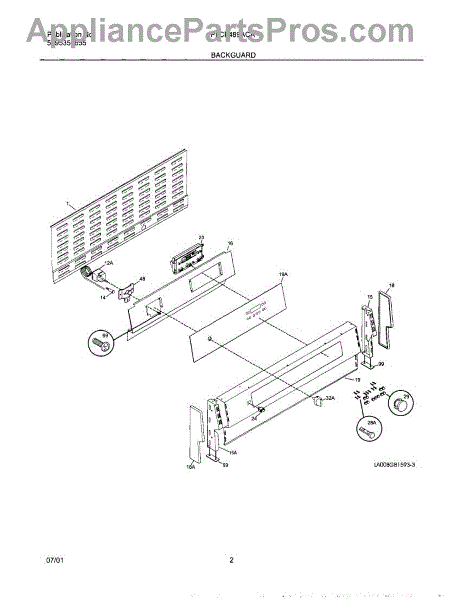 Parts for Frigidaire PLCF489ACA: 03 - Backguard Parts