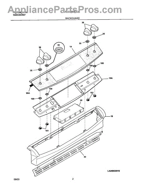 Parts for Frigidaire PLCS389DCA: 03 - Backguard Parts