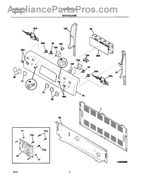 This stainless steel backguard panel replaces the rear finish panel on a range to restore a clean, finished look and protect the area behind the cooktop. It fits where the original backguard mounted and matches the appliance's stainless finish. What it does: