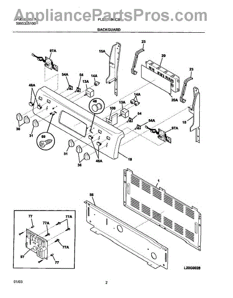 This stainless steel backguard panel replaces the rear finish panel on a range to restore a clean, finished look and protect the area behind the cooktop. It fits where the original backguard mounted and matches the appliance's stainless finish. What it does: