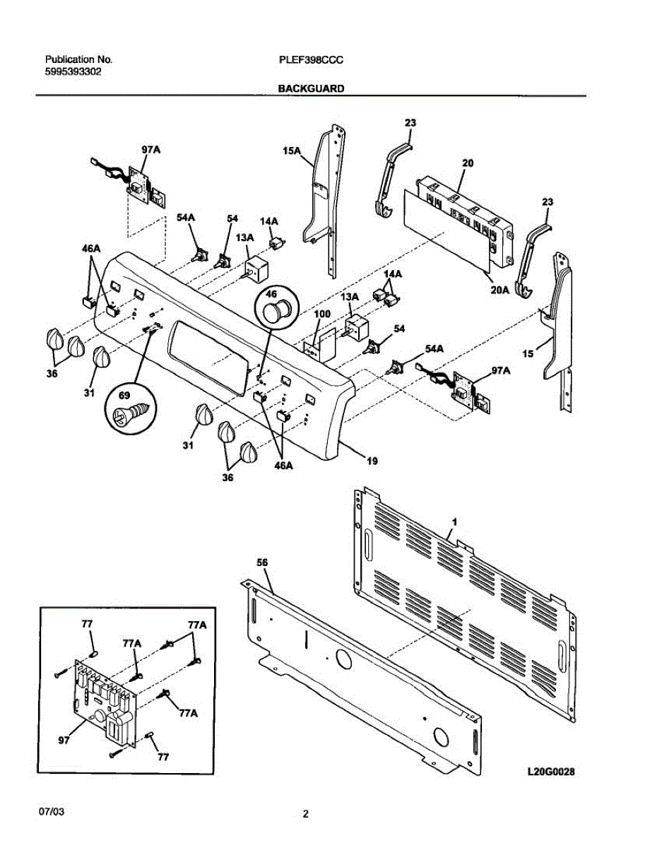 Parts for Frigidaire PLEF398CCC: 03 - Backguard Parts