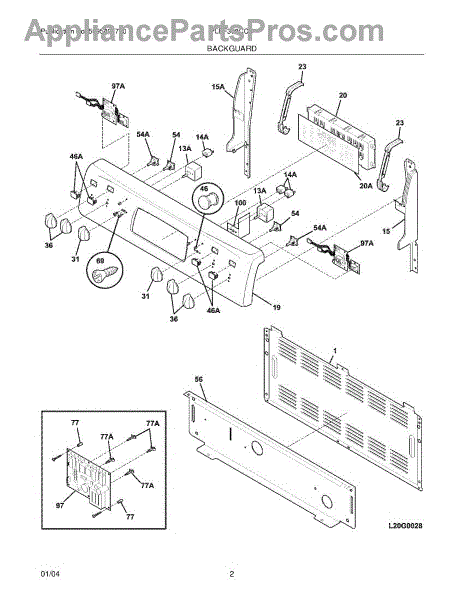 This stainless steel backguard panel replaces the rear finish panel on a range to restore a clean, finished look and protect the area behind the cooktop. It fits where the original backguard mounted and matches the appliance's stainless finish. What it does: