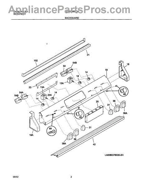 Parts for Frigidaire PLES389CCA: 03 - Backguard Parts