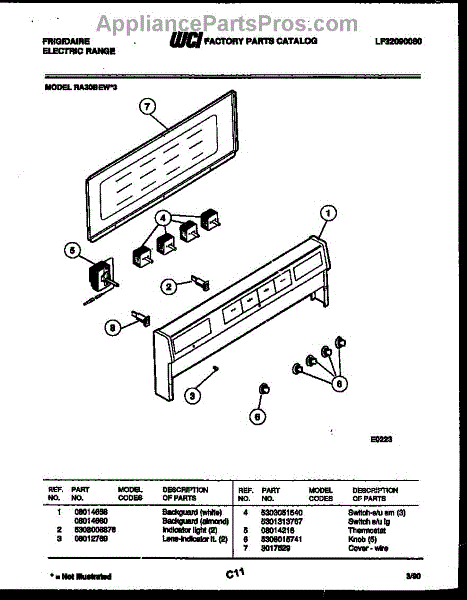 Parts for Frigidaire RA30BEL3: 02 - Backguard Parts
