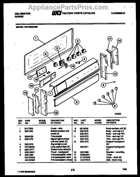 Parts for Frigidaire REP305GW0: 02 - Backguard Parts