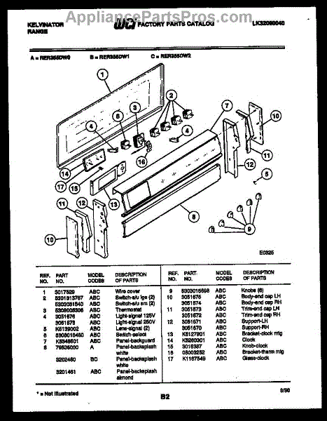 Parts for Frigidaire RER355DD1: 05 - Backguard Parts