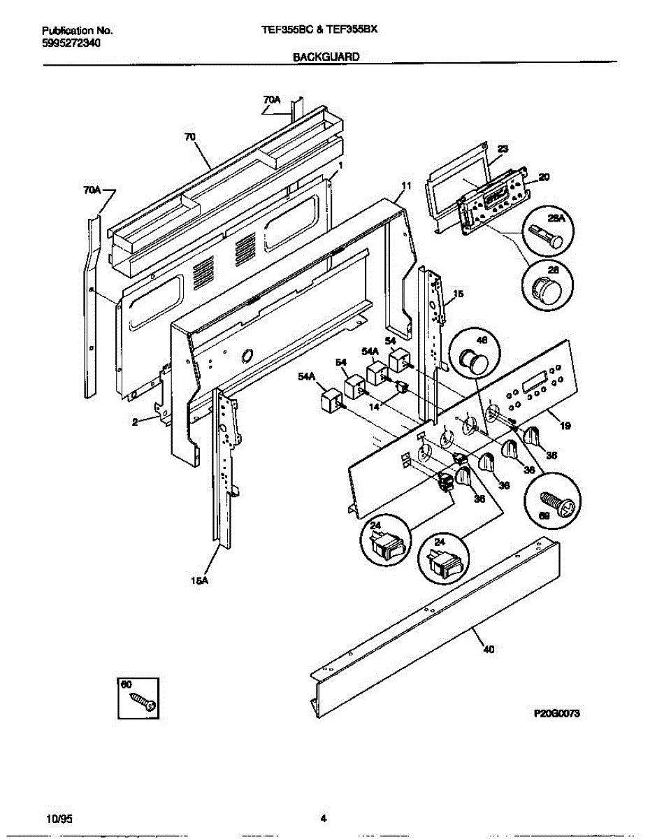 Chrome screw secures handles, door trim, and internal components in ranges and ovens. Replace if lost during cleaning, stripped, or missing after moves.