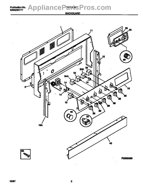 Parts for Frigidaire TEF357BCDE: 02 - Backguard Parts