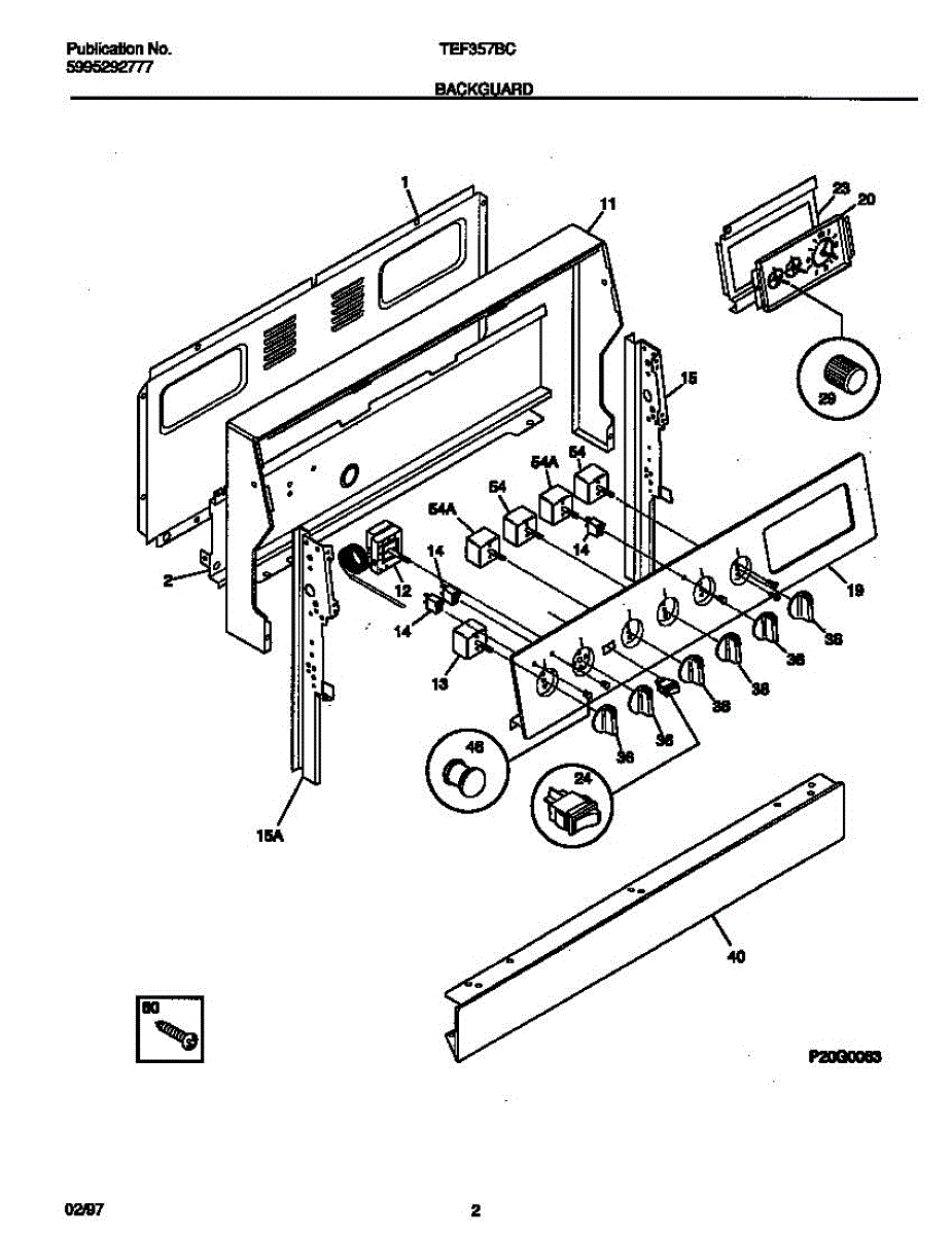 Chrome screw secures handles, door trim, and internal components in ranges and ovens. Replace if lost during cleaning, stripped, or missing after moves.