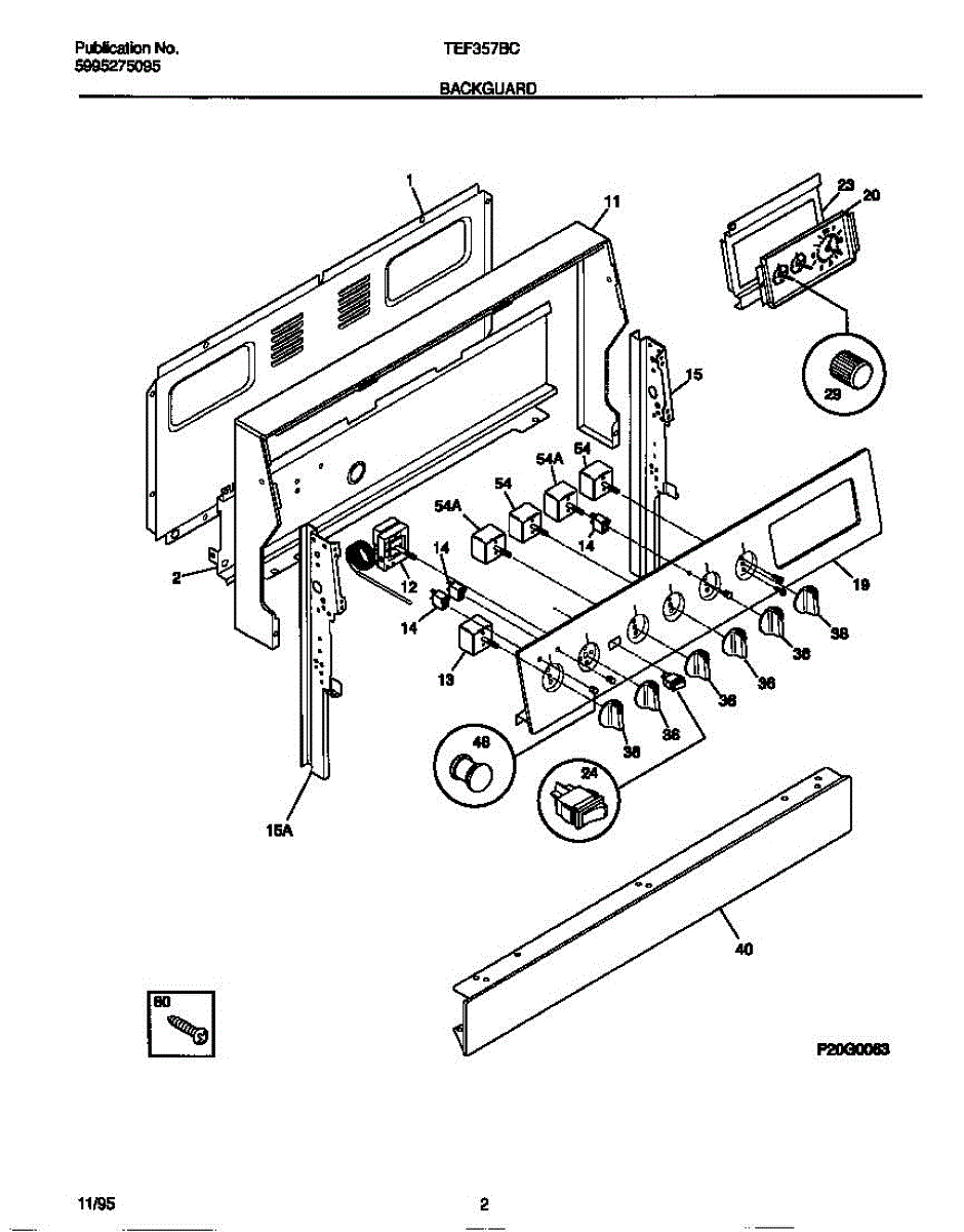 Chrome screw secures handles, door trim, and internal components in ranges and ovens. Replace if lost during cleaning, stripped, or missing after moves.