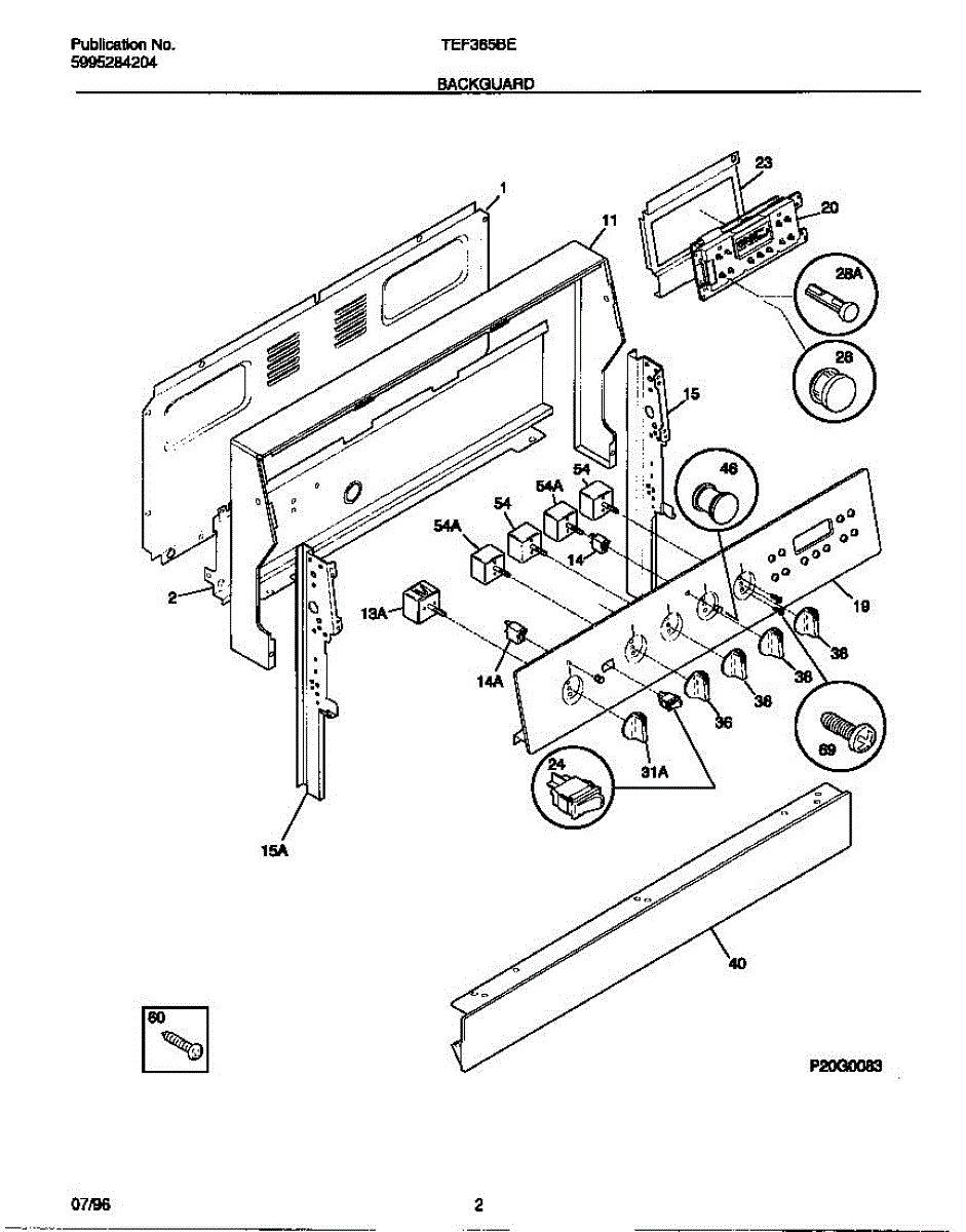Chrome screw secures handles, door trim, and internal components in ranges and ovens. Replace if lost during cleaning, stripped, or missing after moves.